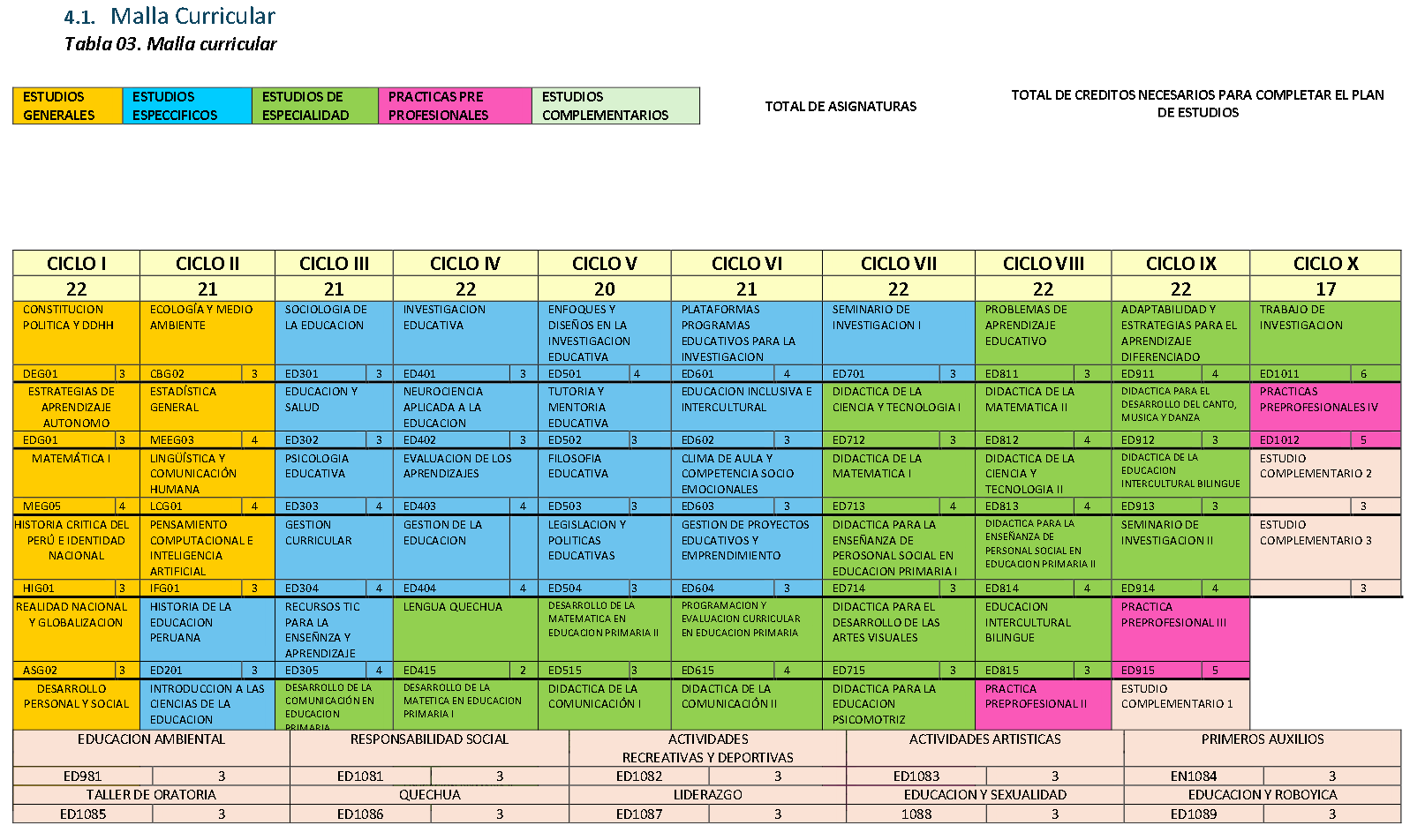 «La malla curricular de Escuela Profesional de Educación Primaria está diseñada para ofrecer una formación integral, abarcando áreas fundamentales de la disciplina. Su estructura busca desarrollar competencias teóricas y prácticas, preparando a los estudiantes para enfrentar los desafíos de su profesión con responsabilidad y ética.